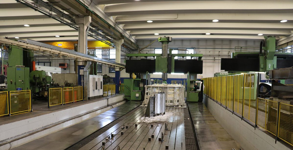 High-performance mobile portal milling with direct drive heads, automatic head to 360,000 positions, twist head for 5-axles continuous machining.